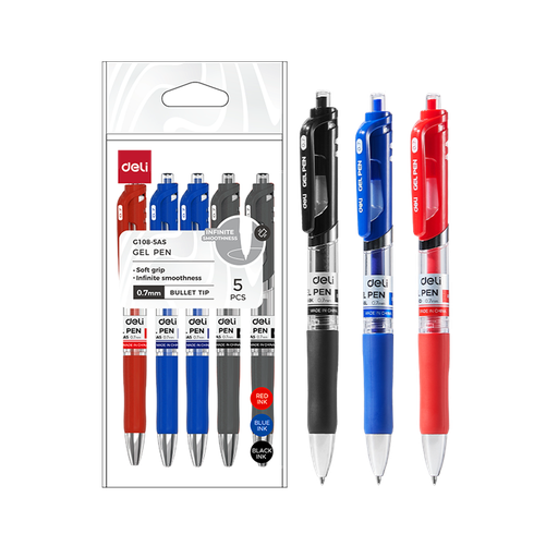 Bolígrafo Ejecutivo Retráctil Gel c/grip 0.7 mm Deli Bolsa 5 boligrafos surtidos *UMV-6 bolsas*