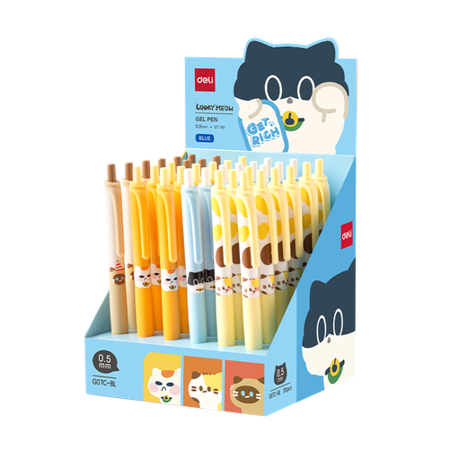 Bolígrafo de Gel Lucky Meow Azul 0.5 mm Deli *UMV-Display 36 u*